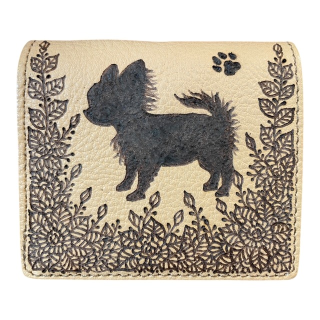 【Qutyjoy】手描き一点もの 二つ折りmini財布 (Bifold) バイカラー/チワワ