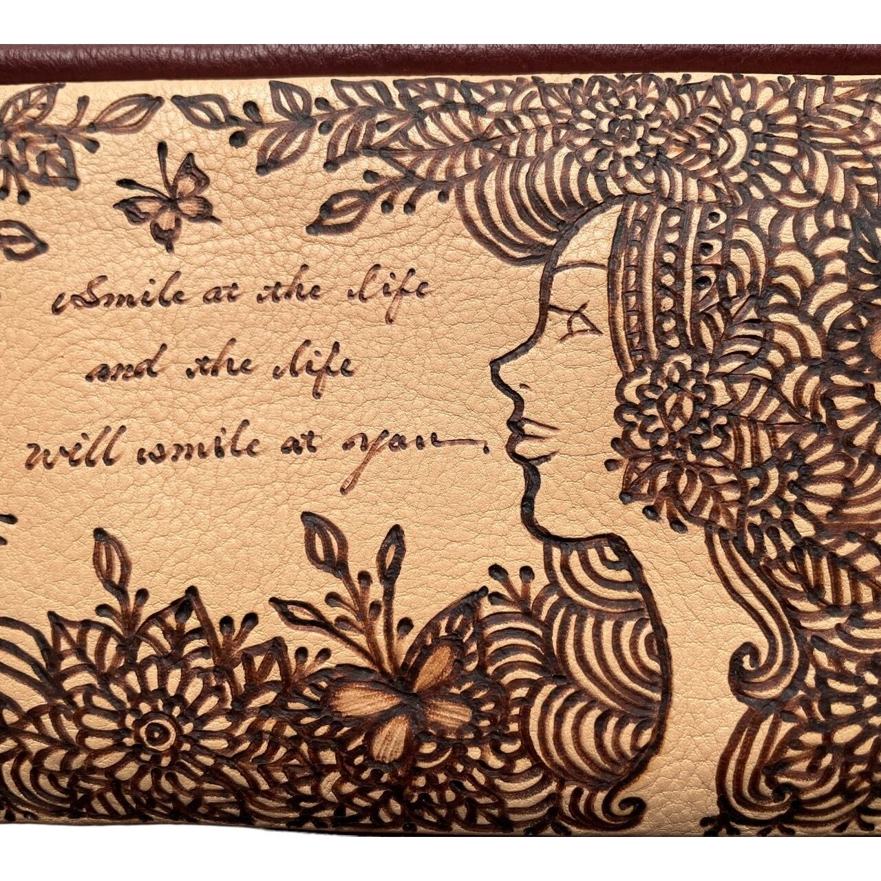 電熱ペンで一点一点手描きしたQutyjoyの線画の世界は「日常に溶けこむアート」。日々の暮らしに「癒しと私だけのこだわり」を表現しそれを革製品でお楽しみいただけます。手に取ってくださった瞬間から、物語が始まります。年月を経て、アメ色に育つヌメ革を末永くお楽しみください。