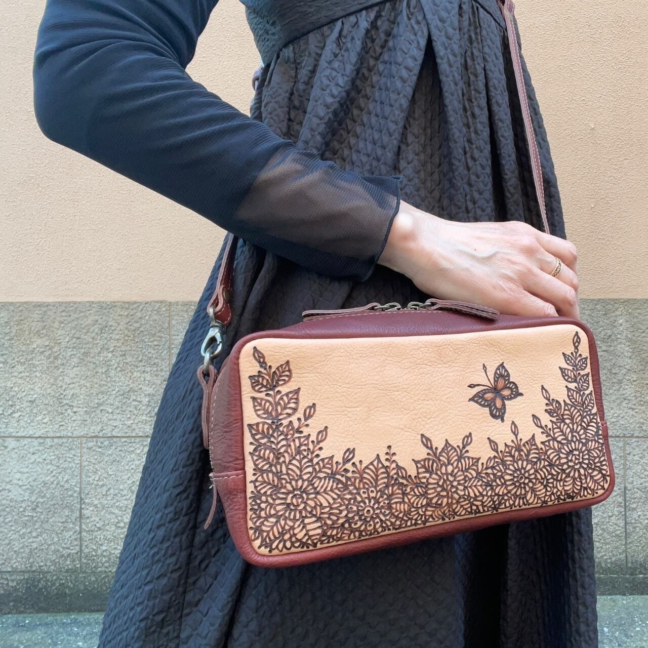 世界に一つだけのオリジナル/ポシェットが新登場しました。軽量で使いやすく、長財布やスマホ、必需品をたっぷり入れておくのにぴったりなサイズ感です。革製品の温かみと、線画で描かれた個性的なデザインが特徴で、コーディネートのアクセントにも!手作業による一点物だからこそ、その存在感と味わい深さを末永くお楽しみいただけます。
