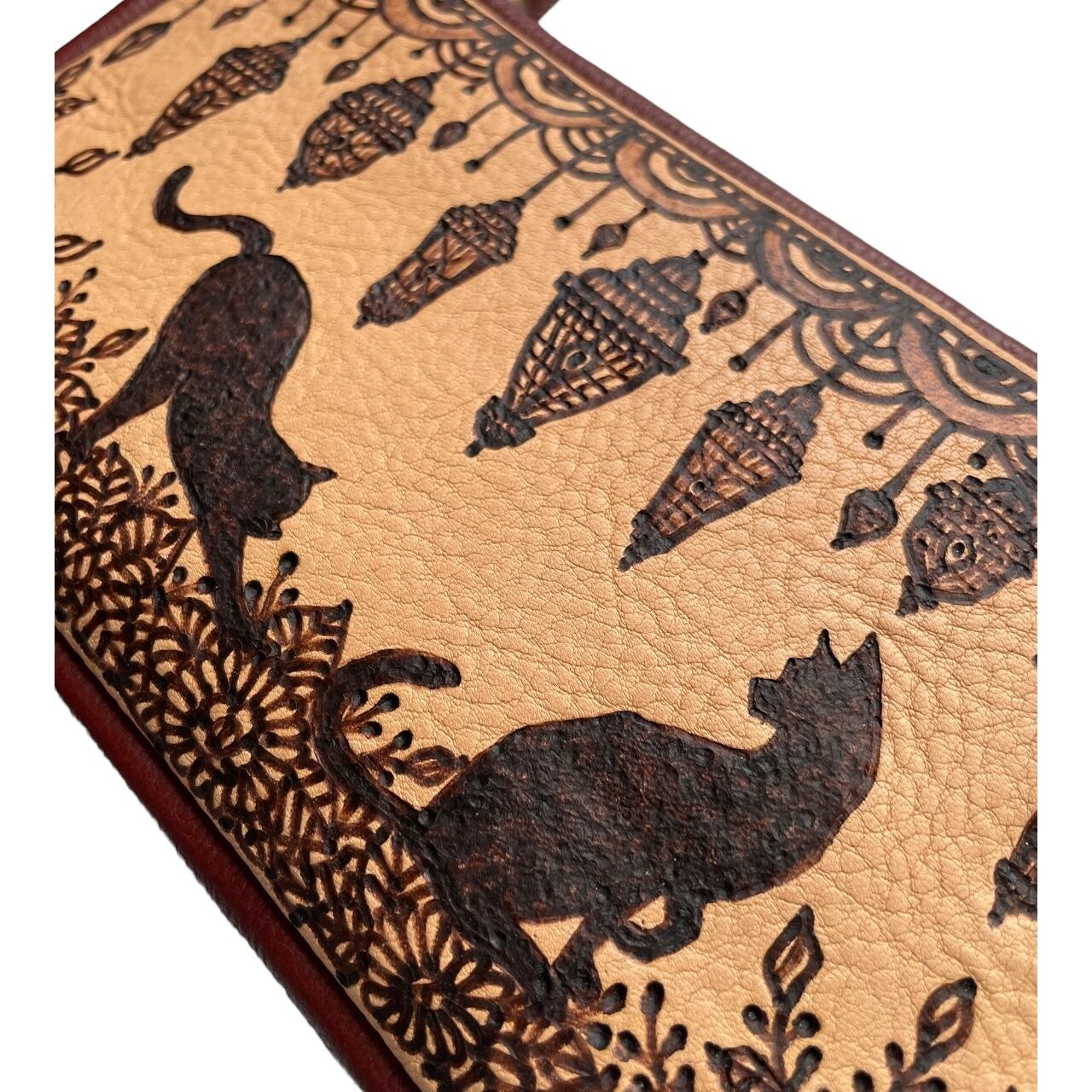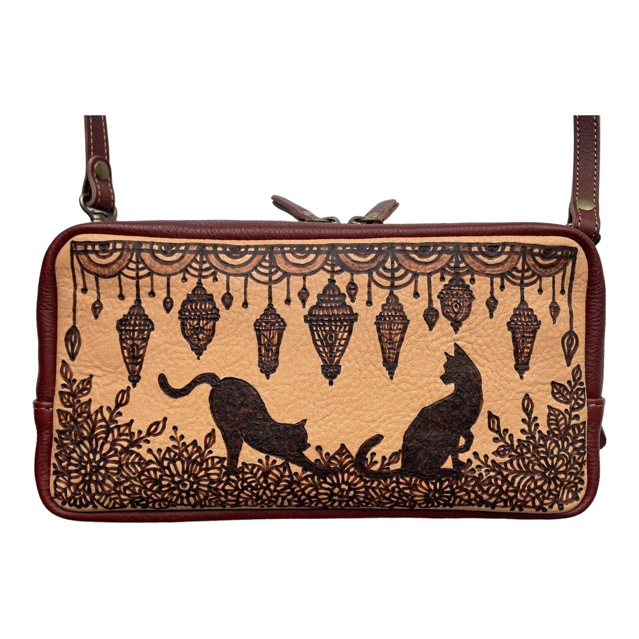 【Qutyjoy】手描き一点もの バイカラーポシェット/猫とトルコランプ